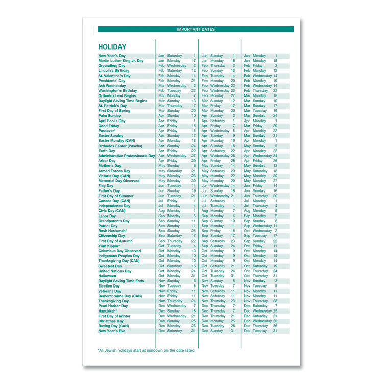 Weekly and monthly pages allow you to plan for the immediate future and set a plan to achieve long-term objectives. Express Track shaded note space on each spread for quickly recording goals and ideas. Includes a double-sided storage pocket. Features life-management tips for prioritizing and setting goals, a three-year calendar reference page for long-range planning, an additional page listing important holiday dates over a span of three years, memo pages and a name/address page. Made entirely of recycled materials. Dated/Undated: Dated; Calendar Format: Weekly; Monthly; Calendar Spread Format: One Week per Two-Page Spread; One Month per Two-Page Spread; Edition Year: 2025 to 2026.
