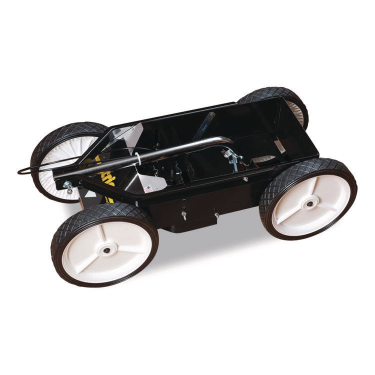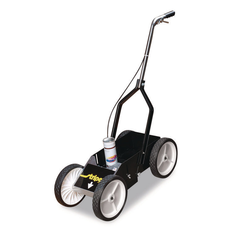 The Champion Sports Striping Machine offers the best in stability and precision stripe makers on the field. The sprayer accurately dispenses paint from the aerosol onto grassy surfaces creating 2" to 4" lines, adjusting the line marker to your preference. The 10" easy rolling wheels allows for easy mobility and windscreen prevents paint from spreading outside. Control the paint/spray by using the fingertip on/off lever. The Field Striping Machine is big enough to store 12 cans for future use in its large compartment. Best of all, the striping machine is maintenance free, where no clean-up is necessary. Paint-Supply Type: Ground Marking Machine; Handle Type: Steel; Material(s): Steel; Color(s): Black.