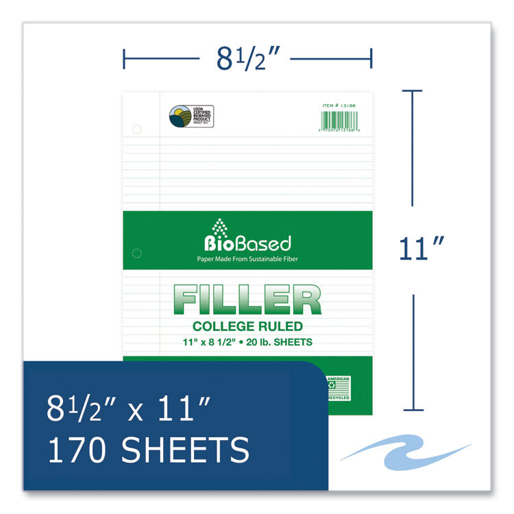 Filler Paper, 3-Hole, 8.5 x 11, College Rule, 170 Sheets/Pack, 12 Packs/Carton