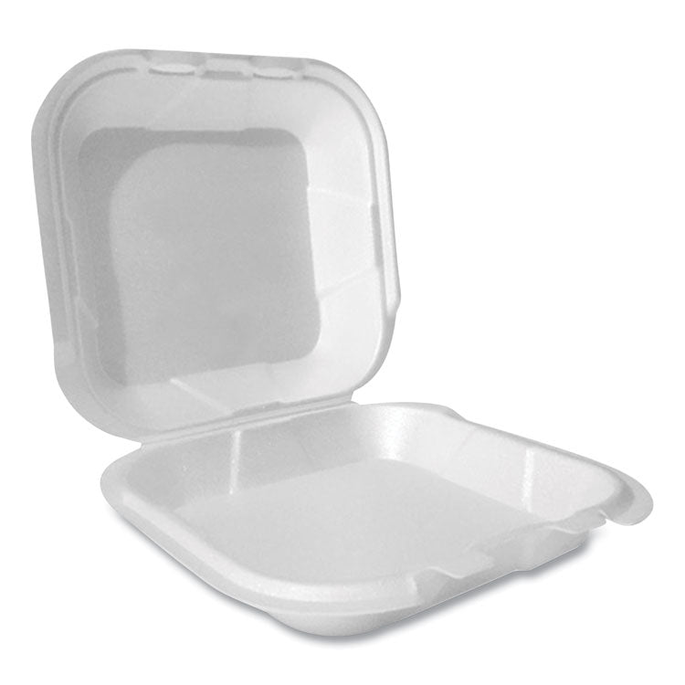 Foam Hinged Lid Container, Secure Two Tab Latch, Poly Bag, 8 X 8.56 X 2.76, White, 100/sleeve, 2 Sleeves/bag, 1 Bag/pack