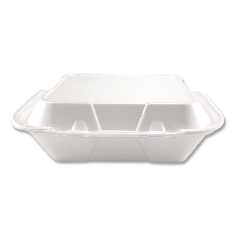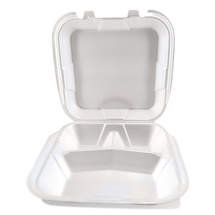 Foam Hinged Lid Containers, 3-Compartment, 9 x 10 x 3, White, Foam, 200/Carton