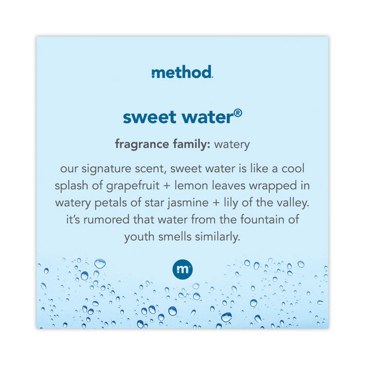 The Method hand soap refill is full of naturally derived foaming hand wash to refill your bottle nearly three times. This chubby tub packed with plant-based grease-cutting power is made with 50% recycled plastic and designed to be recycled again. It's a sudsy cycle of goodness. Easy to useremove the lid from your foam hand soap bottle, carefully refill leaving about an inch at the top if you have a pump bottle, replace the lid, pump a few times and you're back in business. Soap Type: Foam; Volume Capacity: 28 oz; Scent: Waterfall; Personal Soaps Application: Hand.