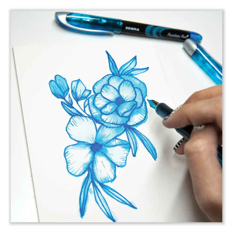 Fountain Pen, Fine 0.6 mm, Blue Ink, Black/Blue Barrel, 12/Pack