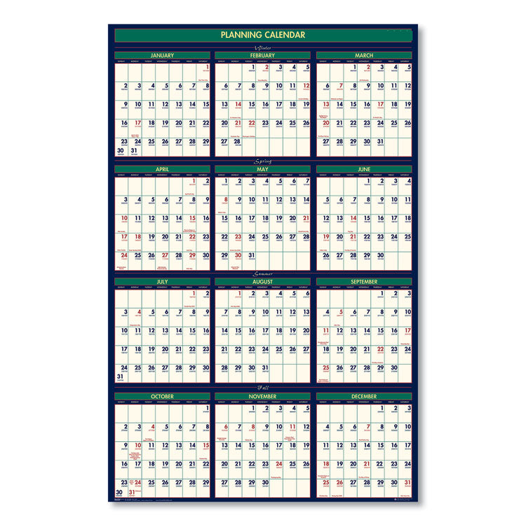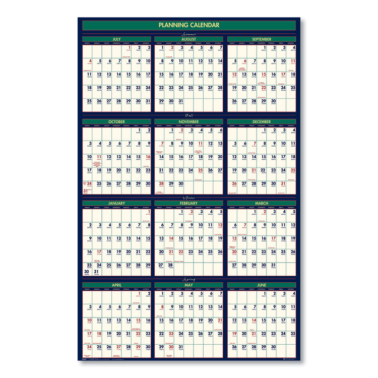 Four Seasons Business/Academic Recycled Wall Calendar, 24 x 37, 12-Month (July-June): 2024-2025, 12-Month (Jan to Dec): 2025