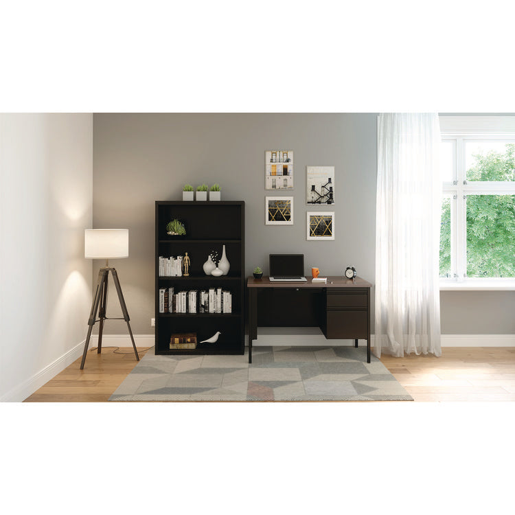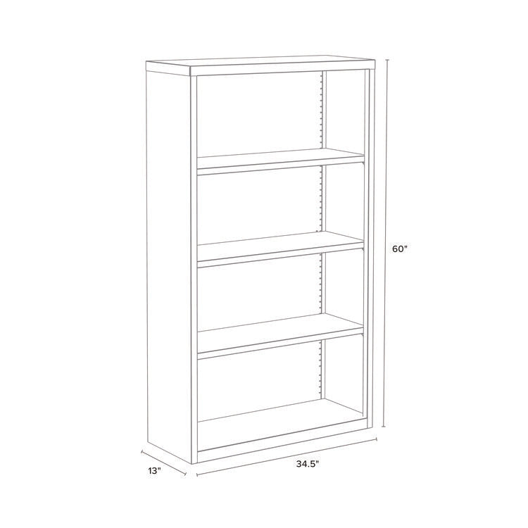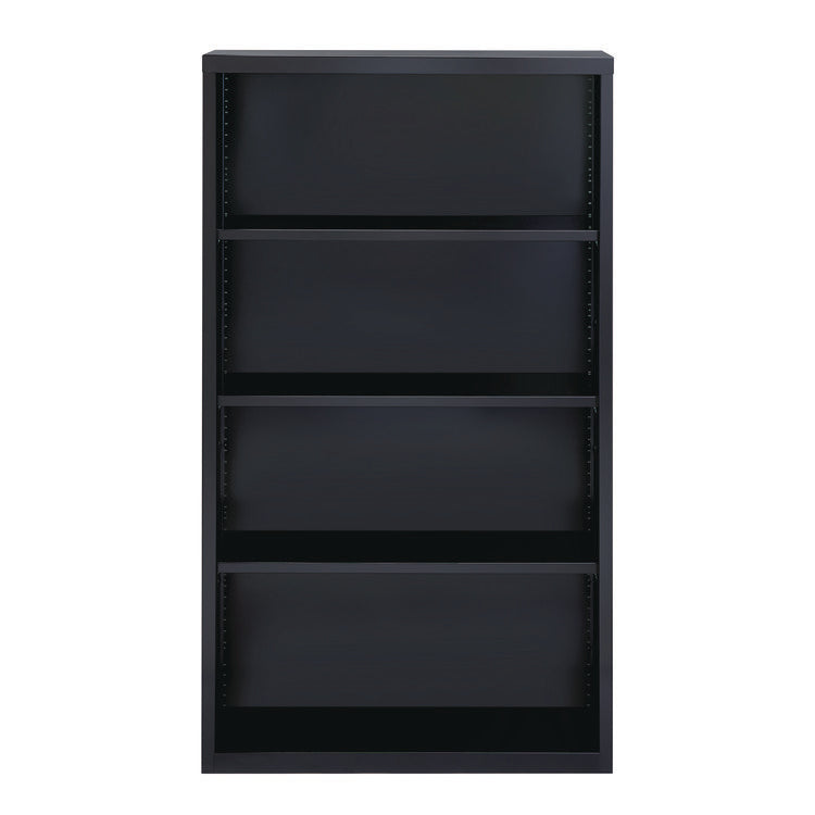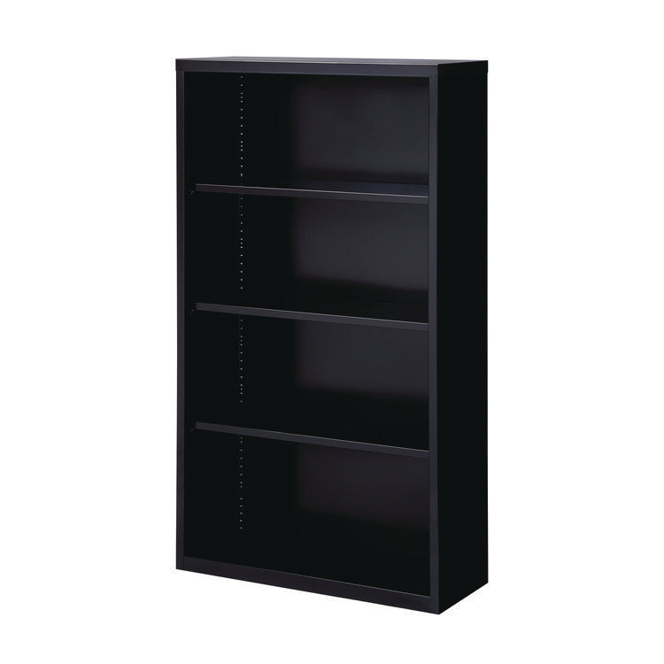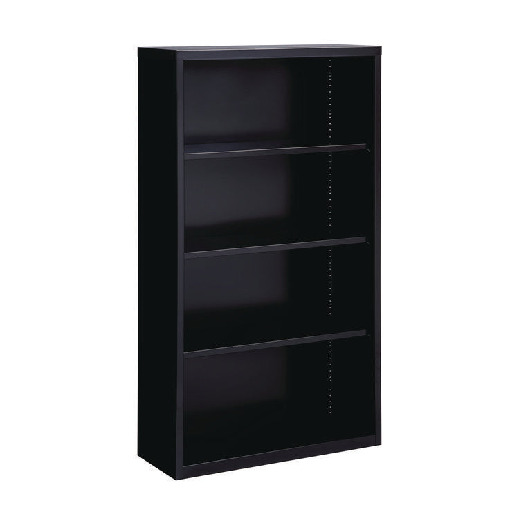 Make a statement with Alera® Four-Shelf Metal Bookcases. Featuring durable, fully welded steel construction and attractive, easy to clean, baked-enamel non-porous surfaces, these bookcases are perfect for your home, office, school and library needs. Providing smart and stylish organization, the middle shelves are adjustable in one-inch increments to accommodate the books and materials you wish to keep close, and the fixed bottom shelf helps ensure solid stability. Create the perfect shelf space to meet your needs while you keep clutter at bay. Color(s): Black; Color Family: Black; Material(s): Steel; Number of Shelves: 4.