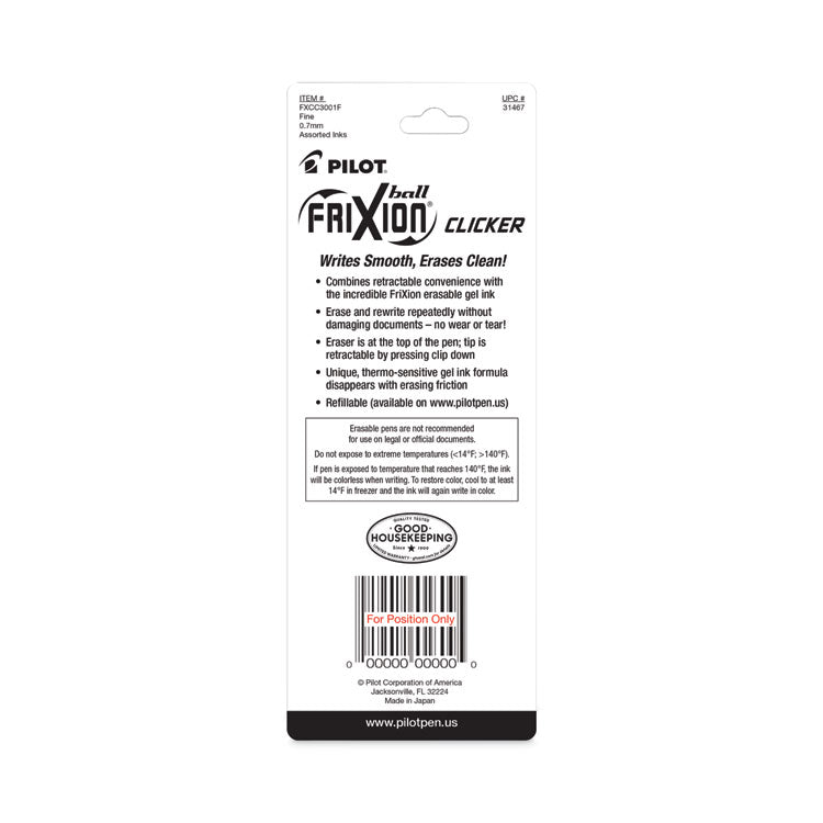 FriXion Clicker Erasable Gel Pen, Retractable, Fine 0.7 mm, Assorted Business Ink and Barrel Colors, 3/Pack