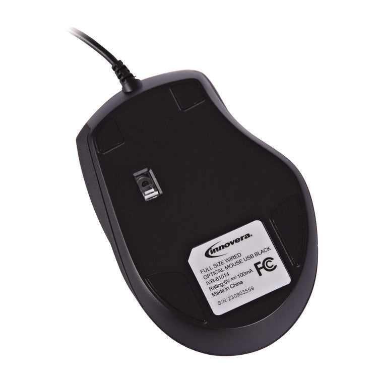 Full-Size Wired Optical Mouse, Usb 2.0, Right Hand Use, Black