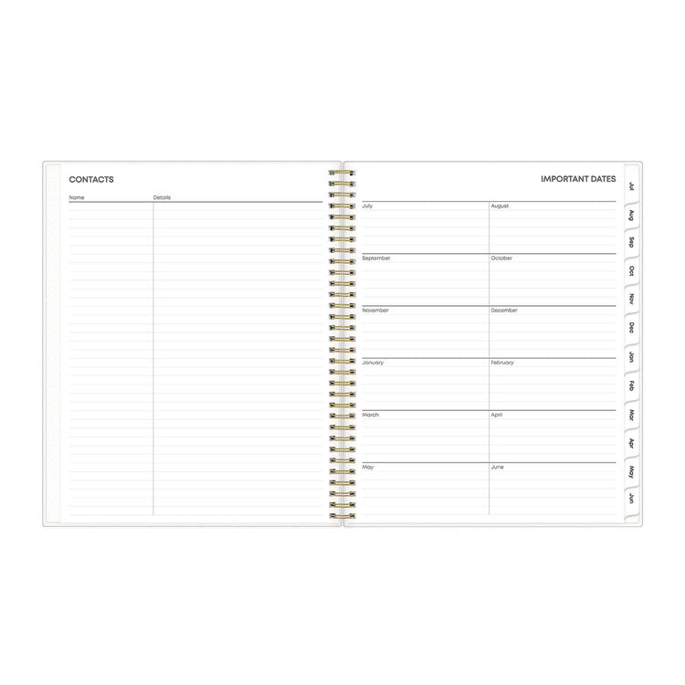 Keep track of upcoming events with this Gemma Academic Year Planner. It features spacious, two-page weekly and monthly layouts, tabbed months, extra notes pages as well as reference calendars, a goals section and more. For those who wish to keep track of their school year, while organizing tasks, yearly goals, to-do-lists and more, this planner is the perfect companion. Ample space for notes on each day, week and month help you stay focused no matter what the year might bring. While you're working hard, making your year as successful as it can be, an attractive, yet tasteful, geode-inspired Gemma pattern helps you, or at least your planner, stand out from the crowd. Planner is dated July to June and features two bonus past monthly spreads (May and June) for easy transitions into a new academic year. Dated/Undated: Dated; Calendar Format: Weekly; Monthly; Calendar Spread Format: One Week per Two-Page Spread; One Month per Two-Page Spread; Edition Year: 2024 to 2025.