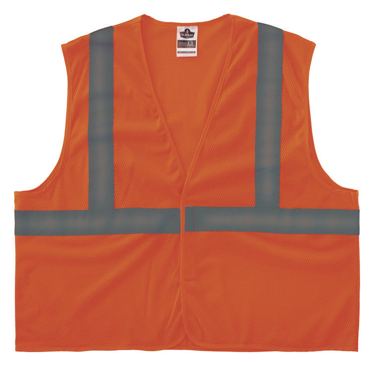 The GloWear 8205HL-ECO Recycled Hi-Vis Vest is a Type R, Class 2 vest that meets ANSI/ISEA 107-2020 visibility requirements and is made of recycled polyester mesh. This post-consumer recycled hi-vis vest features 2" reflective tape for enhanced low-light visibility and a hook and loop closure for easy on and off. Available in dual sizes, this vest is designed for a looser fit for wear over shirts, sweatshirts or jackets. Ideal for anyone requiring Type R, Class 2 apparel, including road construction, baggage handling and municipalities. Available in hi-vis lime and orange. This hi-vis vest is made from recycled polyester, which is produced by converting post-consumer plastic bottles into polyester yarn through chip making and spinning. The yarn is then knitted and dyed and sent to the manufacturer for proper vest cutting and sewing. Each vest is equivalent to approximately 11 16.9 oz plastic water bottles. Change takes the courage to think differently about everything—even the most Tenacious Work Gear® on the planet. From reducing waste to incorporating sustainable materials and practices whenever and whenever possible, our Blue Marble mission honors the need to do better without compromising quality or performance, ensuring every worker heads home safe, sound and happy when the whistle blows. Apparel Type: Safety Vest; Material(s): Polyester; Color(s): Orange; Color Family: Orange.