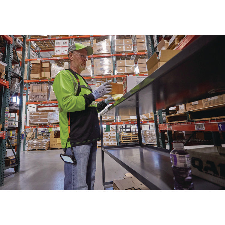 Class 2 black front performance T-shirt made of lightweight birdseye knit paired with 3M Scotchlite Comfort Trim. Moisture wicking treatment and armpit vents keep the user cool and dry. 30+ UPF for protection against harmful UV. An outside chest pocket to keep small items accessible. Black front, sleeves and collar hide dirt and wear. Apparel Type: Hi-Vis Shirt; Material(s): Polyester; Color(s): Lime; Color Family: Green.