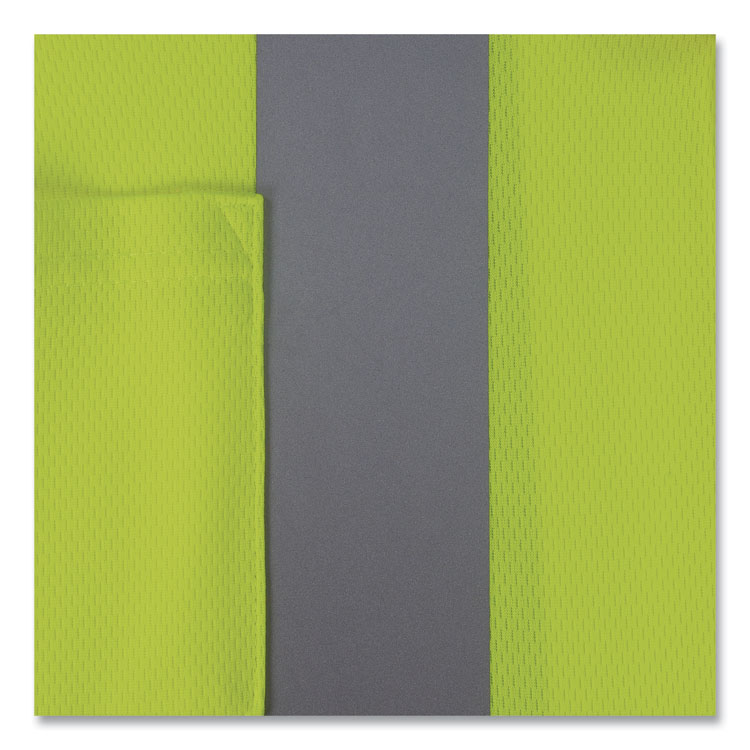 Class 2 polo shirt made of a breathable birdseye knit for the boss and/or anyone who needs to be cool, compliant and look sharp doing it. Features moisture wicking treatment, 30+ UPF for protection against harmful UV, 2" ANSI-compliant heat transfer reflective, split tail hem and one outside chest pocket. Apparel Type: Hi-Vis Shirt; Material(s): Polyester; Color(s): Lime; Color Family: Green.