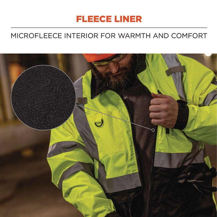 The GloWear 8351 Hi-Vis Windbreaker features a breathable polyester ripstop shell with PU coating for water- and wind-resistant protection from the elements and a soft lightweight fleece lining adds warmth and comfort for cool environments. Unlike typical boxy and bulky hi-vis gear, this lightweight jacket is designed for a more athletic fit. The lightest weight jacket in the GloWear line, this windbreaker allows for ease of movement and comfort on and off the jobsite. Apparel Type: Hi-Vis Jacket; Material(s): Polyester; Fleece; Color(s): Orange; Color Family: Orange.