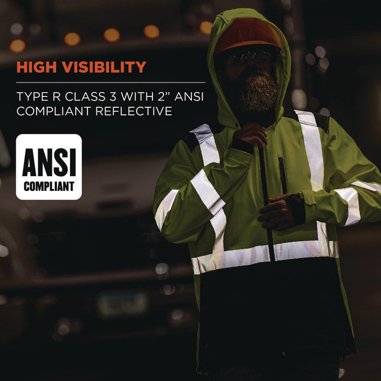 GloWear 8353 Class 3 Hi-Vis Softshell Water-Resistant Jacket, 2X-Large, Lime