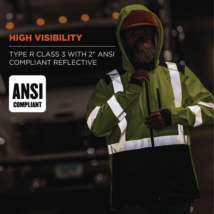 GloWear 8353 Class 3 Hi-Vis Softshell Water-Resistant Jacket, Small, Lime