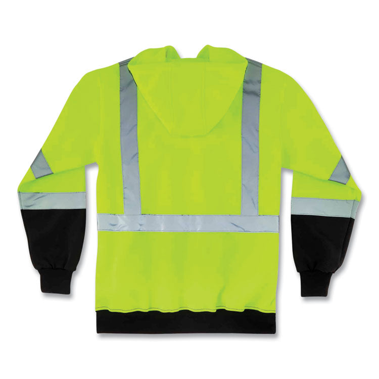 GloWear 8373 Hi-Vis Class 3 Hooded Sweatshirt with Black Bottom, Polar Fleece, Lime, Large