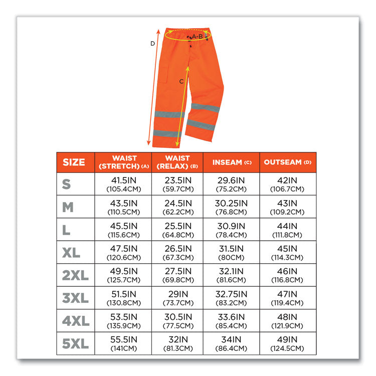 Class E thermal pants have a weatherproof polyester outer shell with a breathable 3M thinsulate lining for warmth and waterproof comfort. Features a 2" ANSI-compliant 3M Scotchlite Reflective and one right leg cargo pocket. Elastic waist with a drawstring guarantee a perfect fit and zippered leg openings offer an easy on/off. Apparel Type: Hi-Vis Pants; Material(s): Polyester; Color(s): Orange; Color Family: Orange.