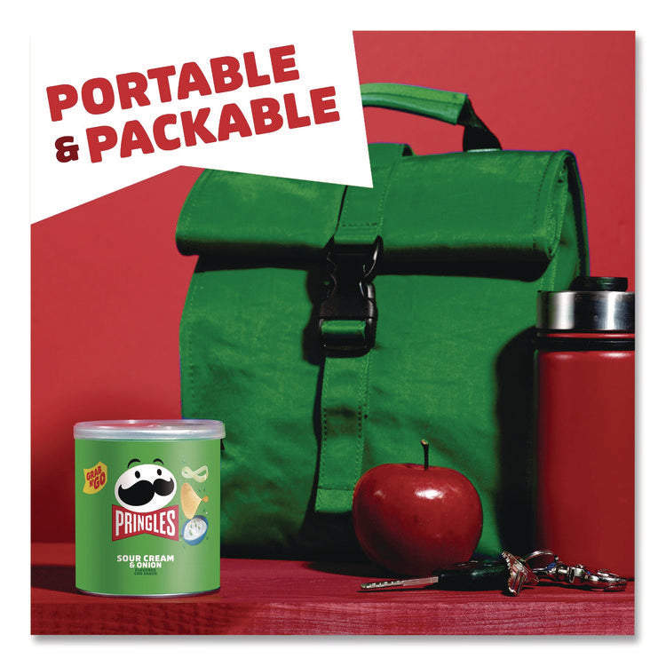 The crisp, hit-the-spot taste of potato seasoned with zesty sour cream and onion. Insanely light, crispy and never greasy, each crisp is bursting with savory flavor. With this convenient, individual size, portable can, it's easy to create your own snacking moments wherever and whenever; grab a can as a pick-me-up for after school or pack into lunch boxes. Bring a can to game time plus some for other Pringles fans. Stash a can in your work desk or pantry to enjoy anytime. Share Pringles at your next get-together to turn up the flavor and fun among family and friends. Get your hands on Pringles Sour Cream and Onion Potato Crisps for an irresistible taste experience that keeps you coming back, stack after stack. Food Type: Chips; Flavor: Sour Cream & Onion; Capacity (Weight): 1.4 oz; Sugar Free: No.