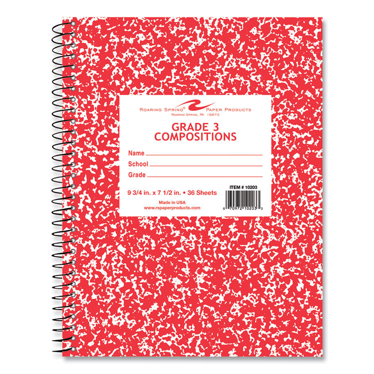 Grade School Wirebound Composition Book, Grade 1 Manuscript Format, Red Marble Cover, (36) 9.75 x 7.5 Sheets, 48/Carton