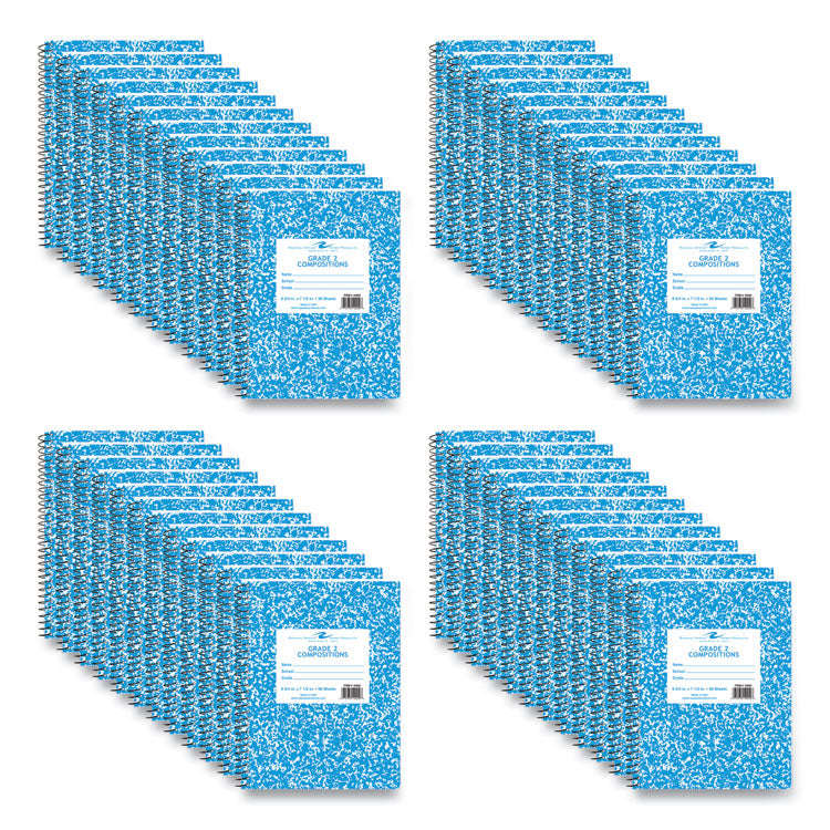 Grade School Wirebound Composition Book, Grade 2 Manuscript Format, Blue Marble Cover, (36) 9.75 x 7.5 Sheets, 48/Carton