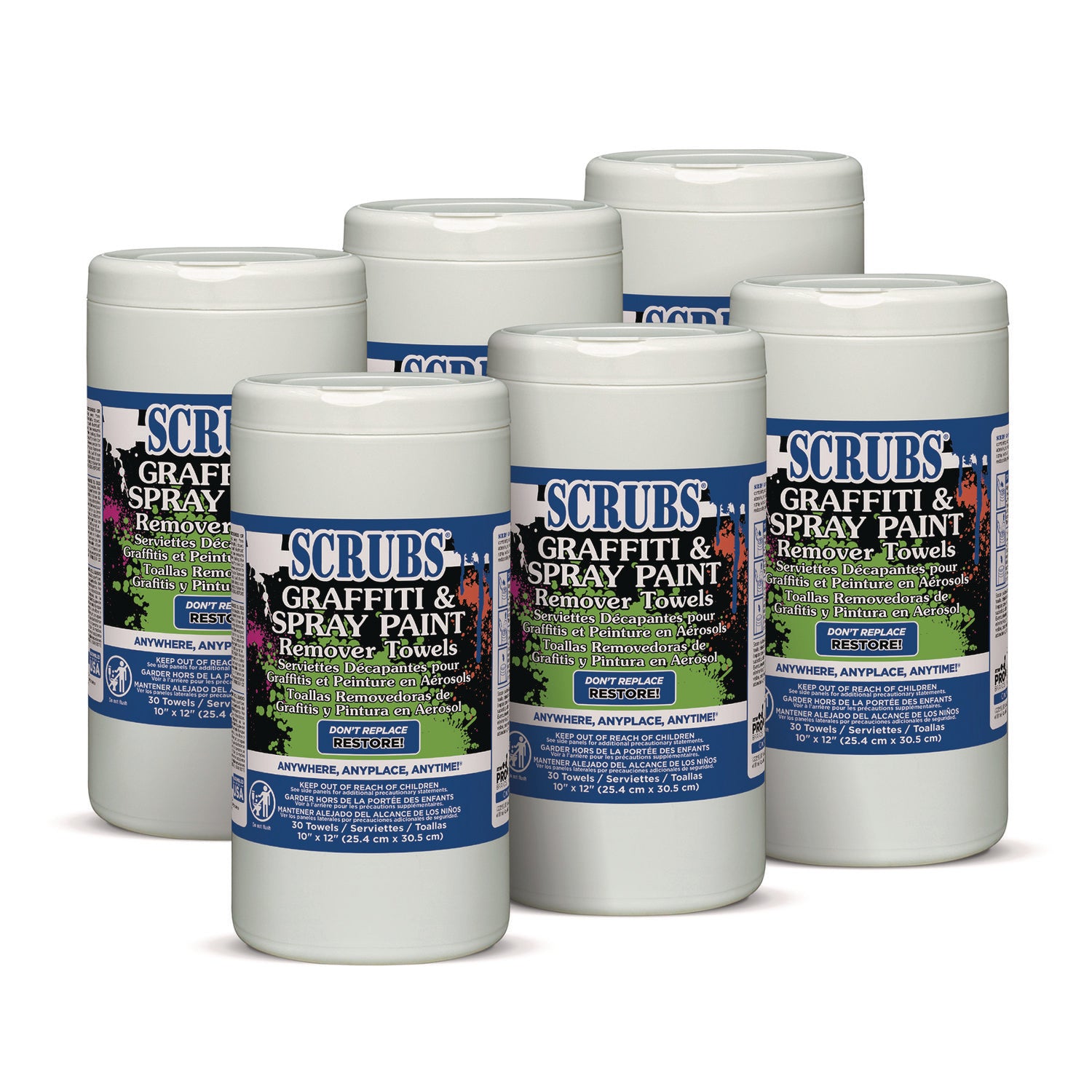 Graffiti and Paint Remover Towels, Citrus, 10 x 12, Neutral Scent, Orange on White, 30/Canister, 6 Canisters/Carton