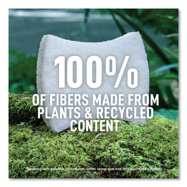 Durable sponges made from 100% plant-based materials. Scrubbing fibers made from 50% agave plant. Reusable sponges are an efficient, money-saving choice. Sponge outlasts 30 rolls of paper towels. Sanitize in the dishwasher. Sponge Type: Scrub Sponge; Material(s): Recycled Polyethylene Terephthalate; Cellulose; Shape: Bowtie; Width: 2.6".