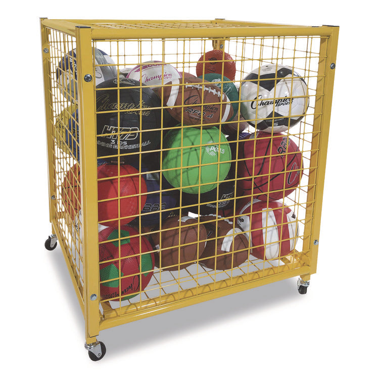 Half Size Lockable Ball Locker, Metal, 132 lb Capacity, 29 x 27 x 31, Yellow
