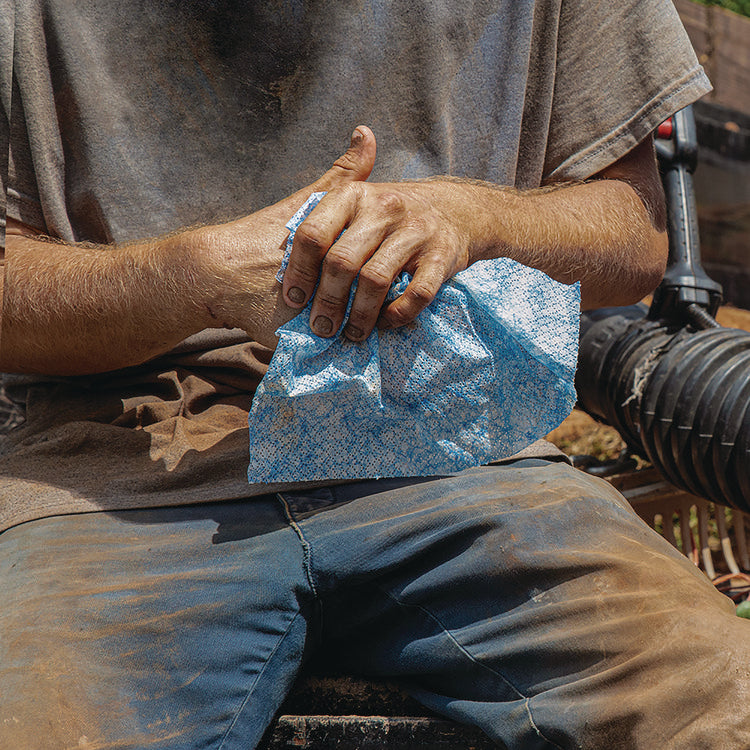 These towels combine an advanced cleaning formula with a strong, dual-textured towel to thoroughly clean hands and surfaces ANYWHERE, ANYPLACE, ANYTIME! The clean, citrus-scented formula loosens and dissolves industrial soils while leaving hands free from dryness and irritation. The Rough Touch blue towel locks in soil to prevent it from transferring back onto hands and surfaces. Hands are left feeling clean with no sticky residue and no rinsing required. SCRUBS in-a-Bucket Hand Cleaner Towels. Towel/Wipe Type: Hand/Body Wet Wipe; Application: Hand Washing; Applicable Material: Aluminum; Ceramic; Formica; Hands; Hard Surfaces; Plastic; Steel; Tile; Vinyl; Wood; Material(s): Cloth.