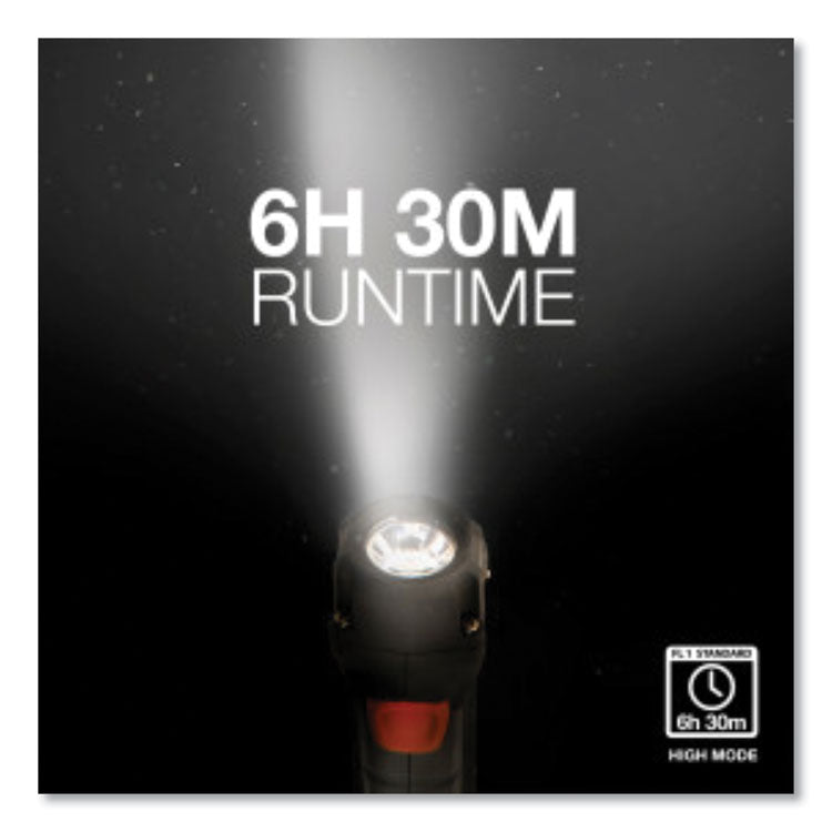 On-site or on the field, Energizer Hard Case Professional Task Light LED Flashlight has the rugged dependability your job demands combined with innovative LED light technology you need to get the job done. Kick it, drop it, knock it: this task flashlight's rugged ABS, steel, and rubber construction and weather-resistant design help it withstand drops from up to 7 m and work in even the most challenging conditions. Easy to use, even if you're wearing utility gloves: the extra-large button on this utility work light makes sure you always find the switch. Alternate between high and low modes for customized brightness and runtime: Get up to 300 lm of clear, bright, powerful light and a runtime of up to 6.5 hours on high, or use the Energizer Smart Dimming feature to save power with a runtime of up to 65 hours on low. Battery Type: Alkaline; Flashlights Type: Industrial; Power Source(s): 2 AA Included; Voltage: 1.5 V.