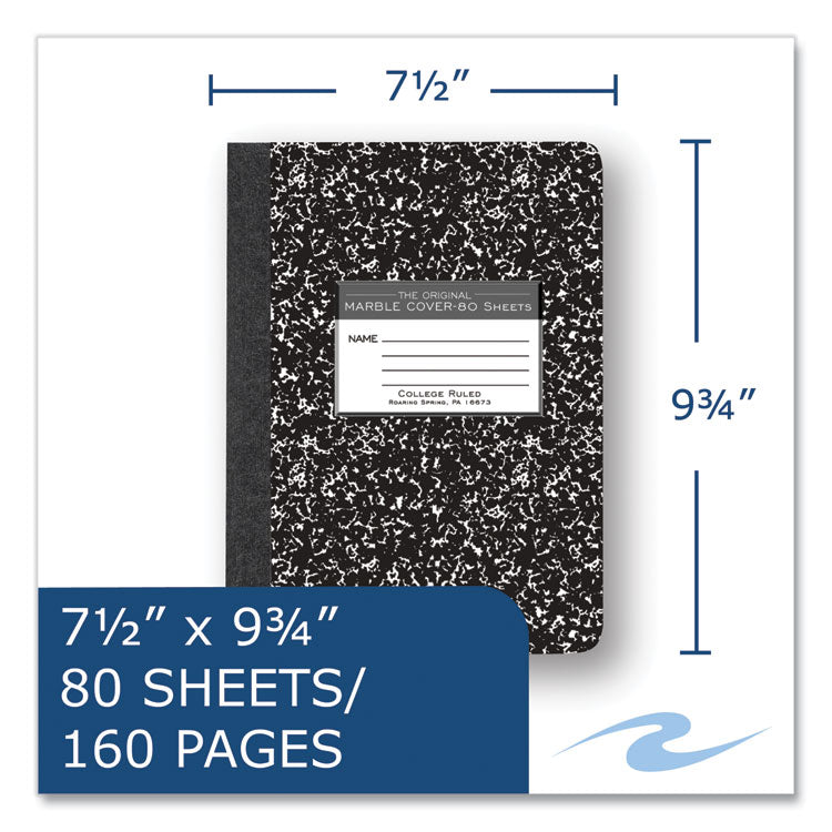 Hardcover Marble Composition Book, Medium/College Rule, Black Marble Cover, (80) 9.75 x 7.5 Sheets, 48/Carton