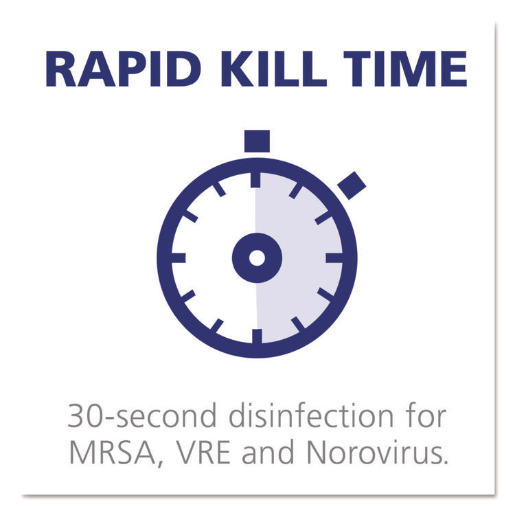 Formulated for convenience and ease-of-use, Surface Disinfectant spray has powerful germ-kill on the surfaces people touch most yet is gentle enough to use around sensitive patients. Designed to accelerate the germ-killing power of alcohol, the patented fragrance-free formulation disinfects without harsh chemicals. It eliminates 99.9 percent of viruses and bacteria on surfaces including norovirus, MRSA, VRE, and human coronavirus in 30 seconds with no rinse required. Application: Disinfectant/Cleaner; Applicable Material: Multi Surface; Chemical Compound: Ethyl alcohol 29.4%; other ingredients 70.6%; Dirt Types: Bacteria; Fungus; MRSA; Norovirus; Tuberculosis; Viruses; VRA.