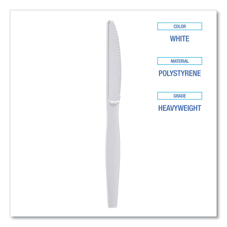 Heavyweight Polystyrene Cutlery, Knife, Plastic, White, 1,000/Carton