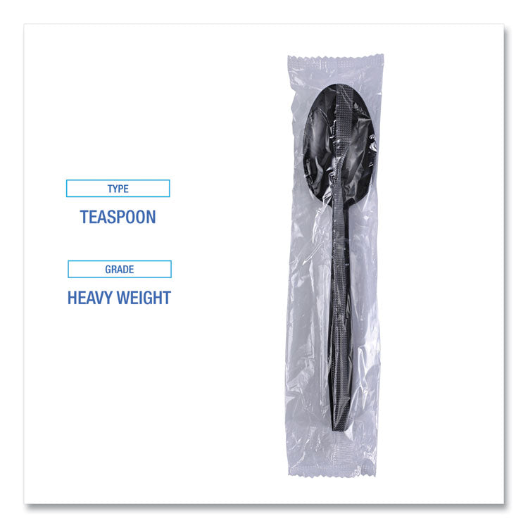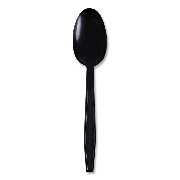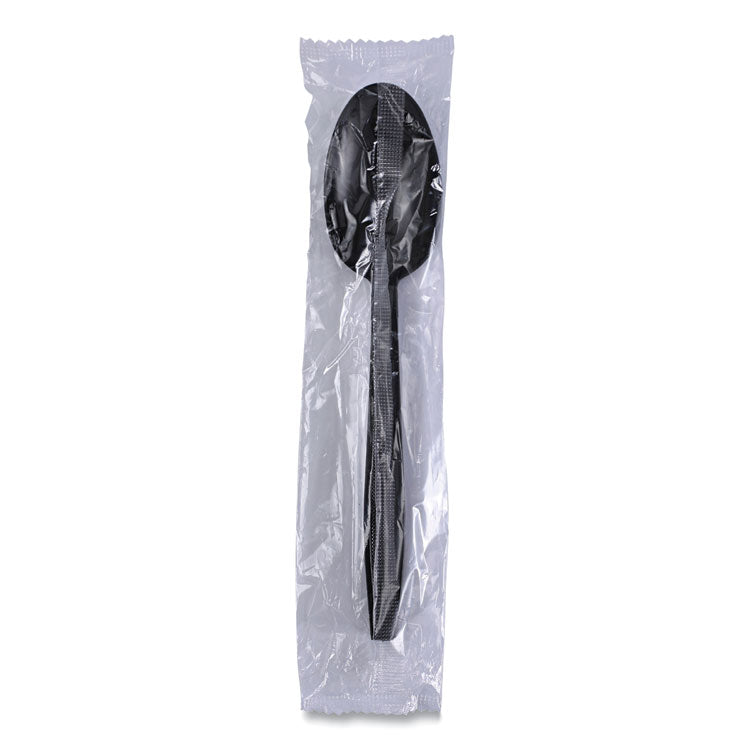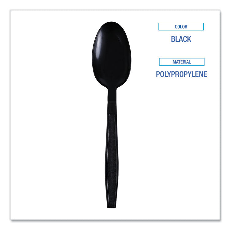 Heavyweight Wrapped Polypropylene Cutlery, Spoon, Plastic, Black, 1,000/Carton