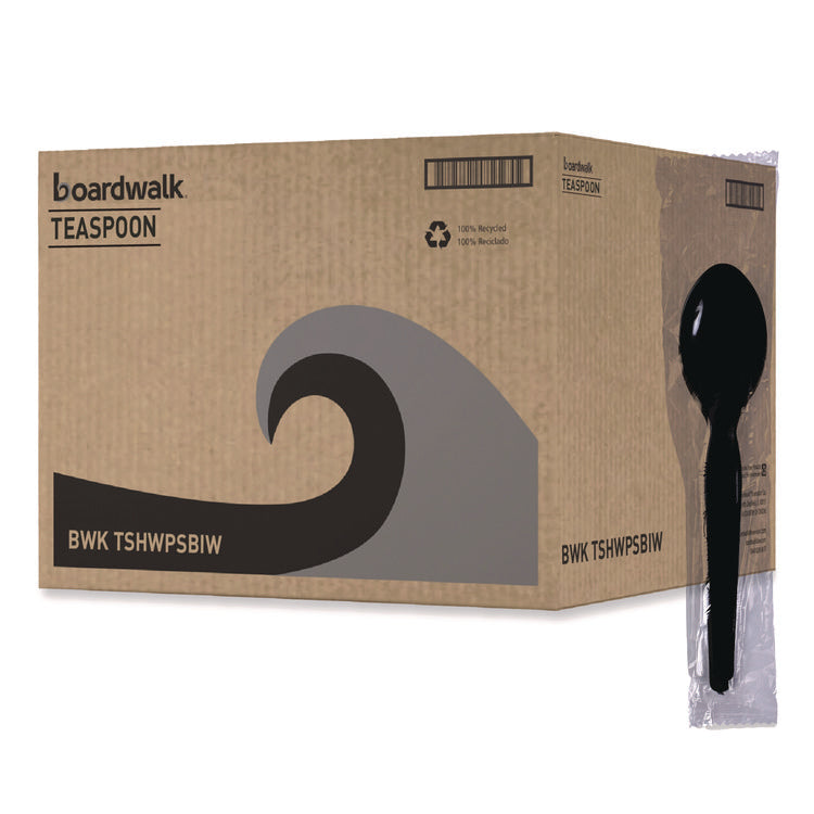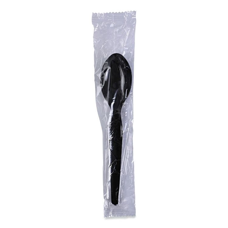 Heavyweight Wrapped Polystyrene Cutlery, Spoon, Plastic, Black, 1,000/Carton