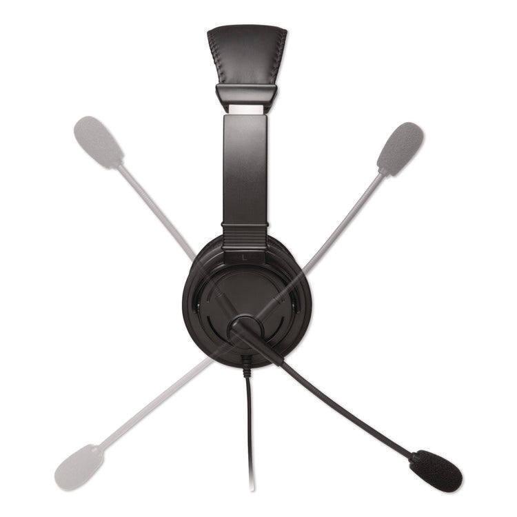 A durable headset that provides high-quality stereo sound, a microphone designed to support voice clarity, and best-in-class comfort features. Supporting common core learning standards, the headphones provide a max output of 94 dB for safe listening and the mic supports the latest audio-based classroom testing requirements. The Hi-Fi Headphones with Microphone are suitable for students, call centers, business professionals and recreational gamers. Compatible with Windows®, Mac® and Chromebook for a simple plug-and-play experience. High-quality stereo sound is provided through powerful 40 mm drivers with deep bass and a wide dynamic range to deliver an exceptional listening experience. Designed to fit heads of all ages, the adjustable headband is padded, the flexible boom-style microphone can be rotated up to 270°, and the foam ear pads are wrapped in a soft leatherette cover to provide hours of comfortable use. Noise-cancelling microphone uses passive resistance technology to filter out ambient noise for optimum speech clarity. The six-foot cord is the ideal length for learning environments and strong enough to stand up to heavy use. Safe listening limit sets the maximum output to 94 dB to protect ears from hearing loss associated with excessively loud noise. Earpiece Type: Ear Cushions; Earpiece Material: Leatherette; Microphone (Yes/No): Yes; Headset Features: Adjustable Headband.