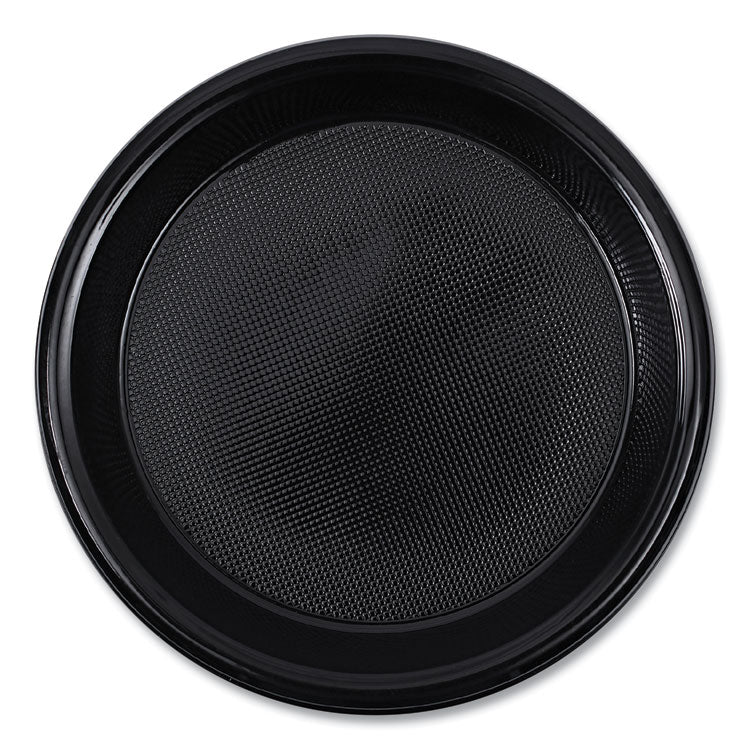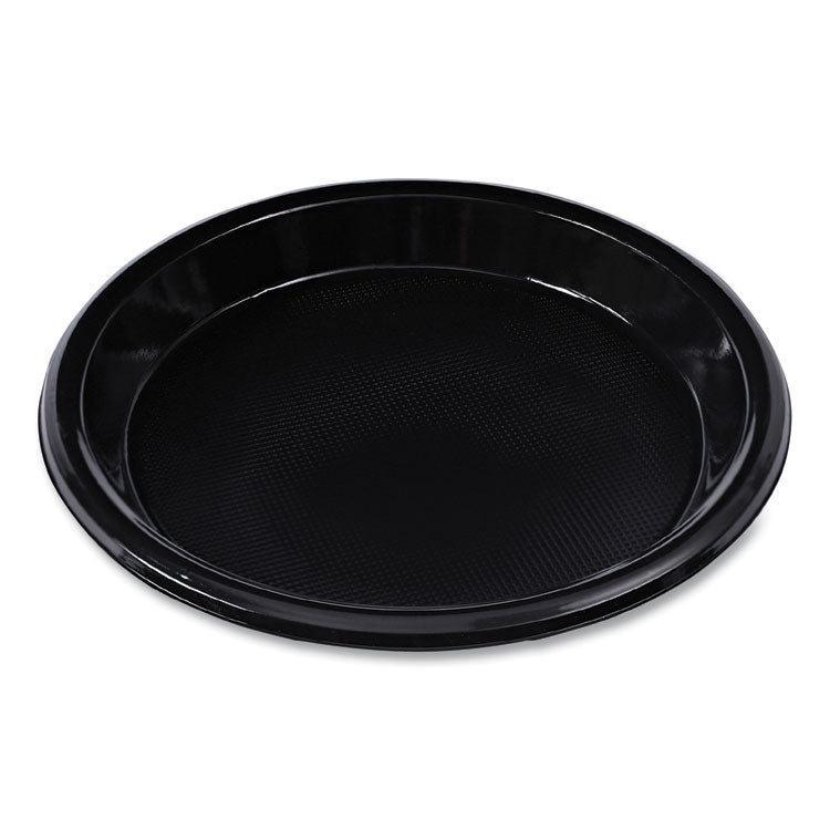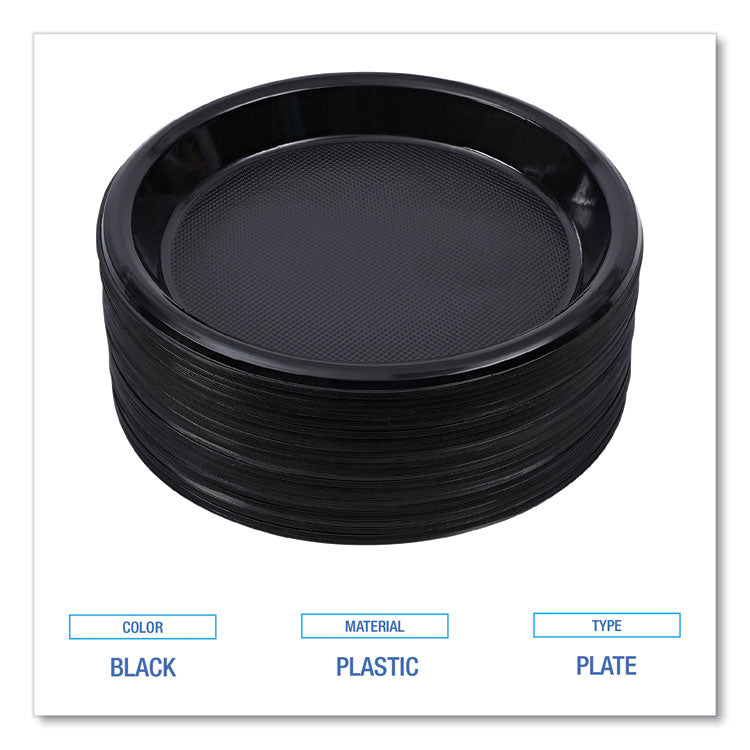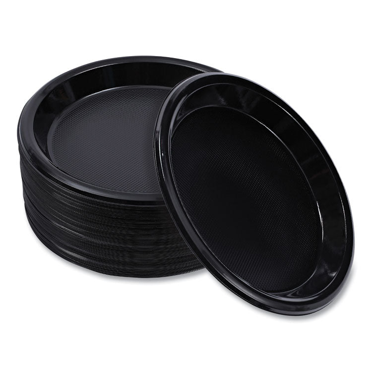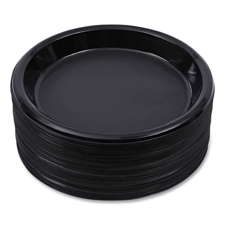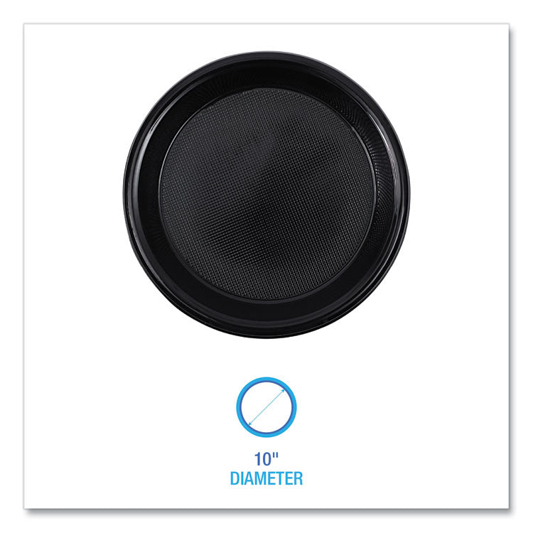 Hi-Impact Plastic Dinnerware, Plate, 10" dia, Black, 125/Sleeve, 4 Sleeves/Carton