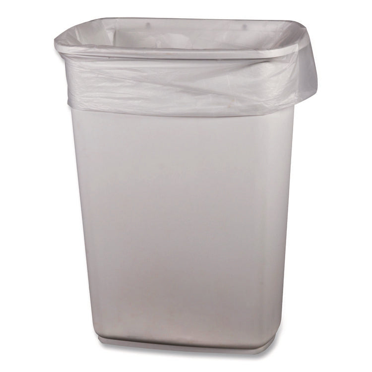 High-density polyethylene liners provide superior performance at an affordable price. Made from 100% prime resin for added strength and durability. The sturdy, star-seal bottom helps prevent leaks and provides even weight distribution for easy removal from receptacle. Coreless perforated rolls are easy to use and great for dispensing on the go. A quality can liner that provides trusted waste collection for light-duty applications. Commercial/Consumer Use: Commercial Use; Maximum Volume Range: 16 to 20 gal; Minimum Volume Capacity: 12 gal; Maximum Volume Capacity: 16 gal.