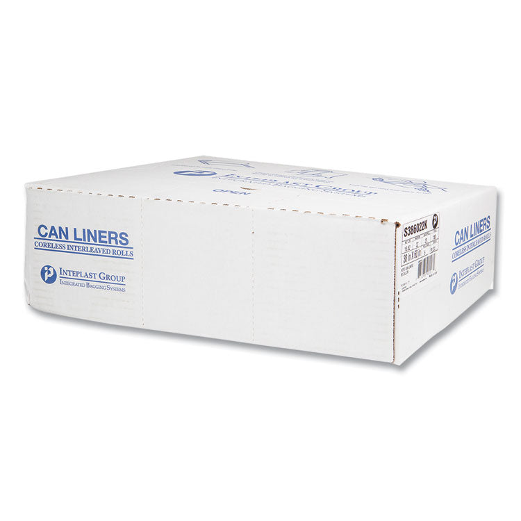 High-Density Commercial Can Liners, 60 gal, 22 mic, 38" x 60", Black, Interleaved Roll, 25 Bags/Roll, 6 Rolls/Carton