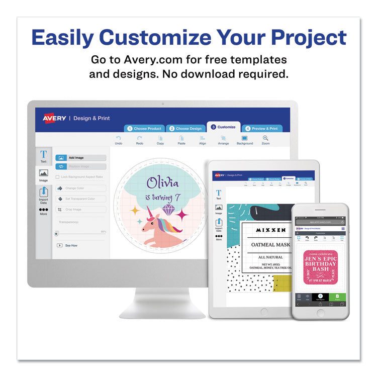 Have something important to say? Customize your white labels with attention-getting images or make your most important messages stand out with high-visibility color labels. Ideal for announcements, priority messages, addressing, color-coding, identification/warning labels and more! Easy to customize with free templates from Avery® Design & Print. For laser printers. Now you've got their attention. Laser Permanent Neon Rectangular Labels with Sure Feed®-Ensuring a reliable printer feed. Shape: Rectangular; Label Size - text: 2 x 4; Label Color(s): Assorted; Color Family: Multicolor.