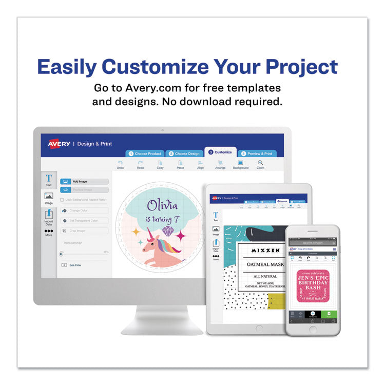 Have something important to say? Customize your white labels with attention-getting images or make your most important messages stand out with high-visibility color labels. Ideal for announcements, priority messages, addressing, color-coding, identification/warning labels and more! Easy to customize with free templates from Avery® Design & Print. For laser printers. Now you've got their attention. 1/2-Page Laser Permanent Neon Rectangles—Get noticed with eye-catching color. Shape: Rectangular; Label Size - text: 5.5 x 8.5; Label Color(s): Neon Magenta; Color Family: Purple.