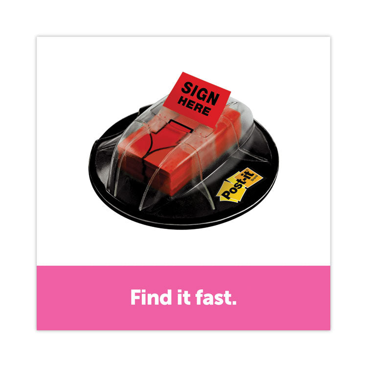 Find it fast with Post-it® Arrow Flags. They make it simple to mark or highlight important information within documents and files that require signatures. They stick securely, remove cleanly as needed. Draw focus to critical items that need attention. Handy desk grip dispenser keeps them ready for use at work, home or in the classroom. Color(s): Red; Color Family: Red; Message(s): SIGN HERE; Page Flags Dispenser: Pop-Up.