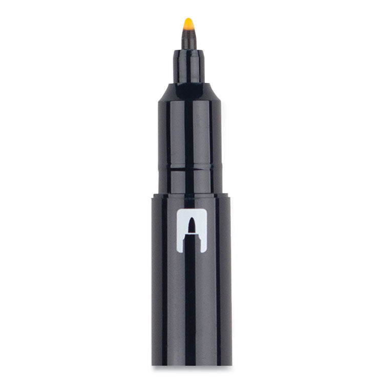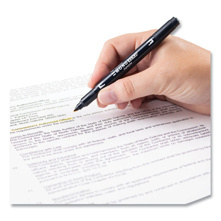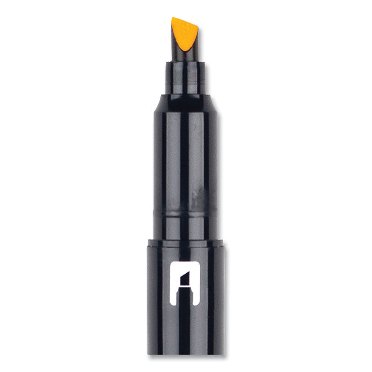 Dual-tip highlighter with durable broad chisel tip and extra-fine bullet tip in one pen. Resin-coated tips and polymer-coated core prevent tip breakage or staining rulers, eliminating unwanted ink transfer. Protective plastic sleeve on chisel tip maintains shape even when using with metal rulers or stencils. Vibrant, fluorescent colors are perfect for color-coding and calling attention to important text. Fine tip works great for underlining and writing margin notes. Fast-drying odorless ink doesn't smear and won't bleed through most papers. Color-coded cap features durable clip. Highlighter Style: Pen; Highlighter Ink Color: Golden Yellow; Color Family: Yellow; Highlighter Tip Type: Chisel/Bullet.