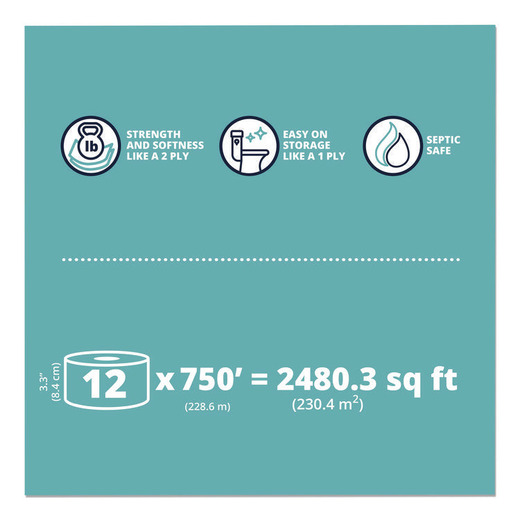 HyTech Seas Mini JRT, Septic Safe, 1-Ply, White, 3.3" x 750 ft, 6 Rolls/Carton