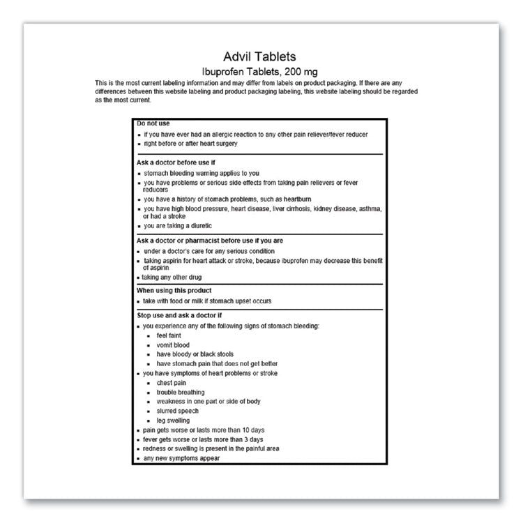 Effective for headaches, backaches, muscle aches, menstrual pain, minor arthritis and other joint pain, body aches and pains from the flu. Packaged for quick refill of Lil' Drugstore Medicine Dispensers (sold separately) or for other use. Contains: 30 Packets of 2 Tablets; Description: Advil® Ibuprofen 2 Tablet Pouch; For Use With: Lil' Drugstore Display Dispenser 71613, 71615; Quantity: 30/Box.