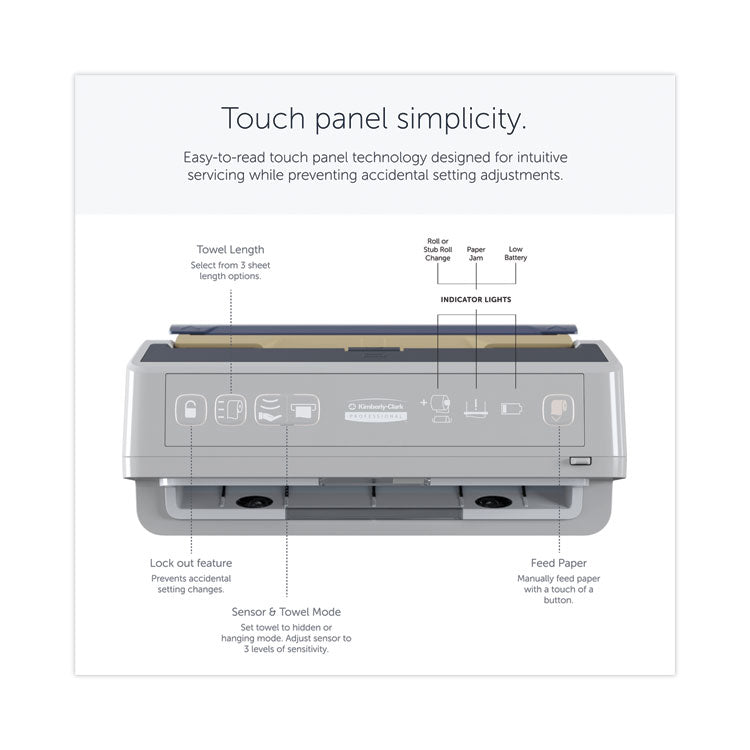 The Kimberly-Clark Professional ICON™ automatic paper towel dispensing system features first-of-a-kind versatility and effortlessly enhances the look of the restroom with one of an exclusive line of six designer faceplates. Inspired by human-centered design, the ICON™ dispenser features intuitive control panel, front-load battery bay and dampened hinge technology. Using direct-drive technology the ICON™ dispenser has a patented dual sensor technology that delivers worry-free, touchless 99.99% jam-free dispensing and is compatible with your choice of Kleenex or Scott roll towels. Towels Dispensers Type: Hardwound Roll Towel Dispenser; Dispenser Capacity (text): 1,150 ft Roll; Material(s): ABS Plastic; Color(s): Black Mosaic.
