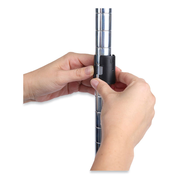 Add extra shelves to existing units, build your own customized unit, or add on shelf extensions with these shelves (combined with Stackable Poles and Shelf Connecting Hooks). Strong welded wire construction provides exceptional strength and stability. Open design allows air circulation and helps reduces dust build-up. Ideal for commercial applications. Snap-on design assembles in minutes. Includes two shelves and shelfs lock clips. Up to 1,000 lbs. per shelf (evenly distributed). Number of Shelves: 2; Shelf Capacity (Weight): 1,000 lbs; Material(s): Steel Wire; Color(s): Silver.