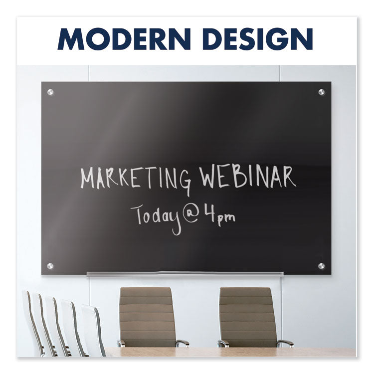 Ultra-modern, tempered-glass-surface whiteboard delivers high-quality performance. Durable, tempered-glass provides a smooth writing platform. This frameless board is a good fit for any contemporary office and will help you stay organized. Hardware is included for simple and secure wall mounting. Occasional cleaning is recommended for best performance. Magnetic Surface. Board Surface Type(s): Dry Erase; Magnetic Board Surface: Yes; Surface Material: Glass; Surface Color: Black.