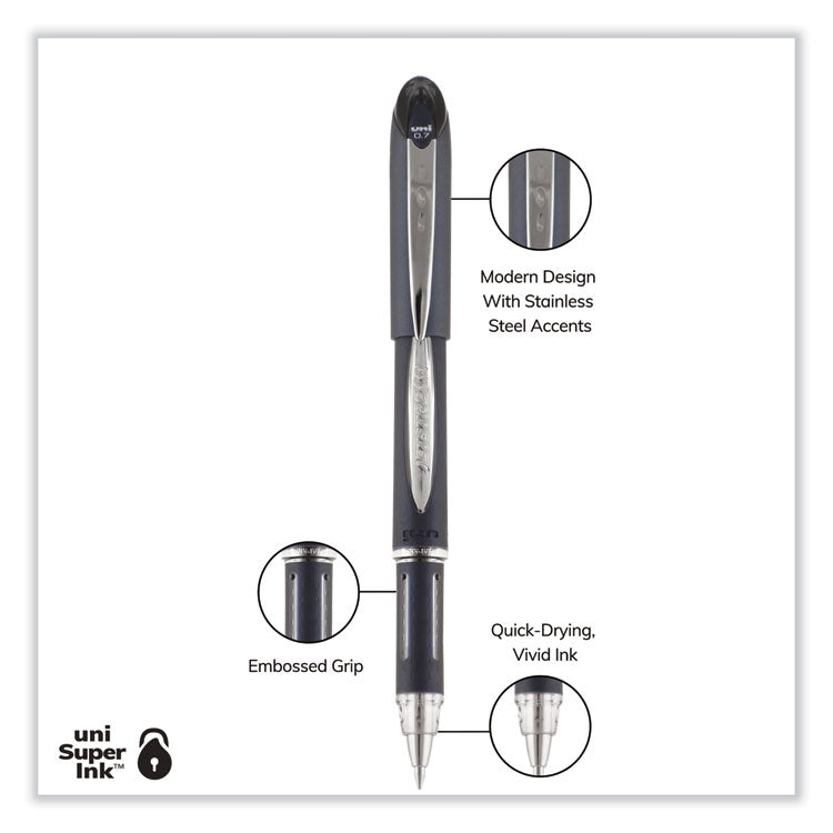 Write with greater speed and efficiency using JETSTREAM Ballpoint Stick Pens from uni-ball. The pens deliver an incredibly fast, clean writing experience that helps you jot down your thoughts and ideas quickly. Combining the silky smoothness and vivid vibrancy of a gel pen with the fast-drying efficiency of a ballpoint, these JETSTREAM ballpoint pens offer the best of both worlds. Quick-drying ink resists smudges and smears, making this pen suitable for left-handed writers. An embossed grip offers better control when writing, while contemporary stainless steel accents offer a stylish appeal. JETSTREAM stick pens feature pigment-based uni Super Ink technology that settles deep into the paper, offering three-way protection against fraud, fading and water. Pen Sub-Brand & Product Family: Jetstream; Pen Type: Hybrid Gel Pen; Pen Style: Stick; Pen Tip Type: Conical.