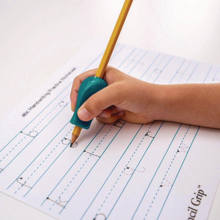The Jumbo Grip helps improve comfort, control, and the quality of handwriting. It uses the proven design of The Pencil Grip and is 40% larger. The large size of the grip means it provides more support, up to the second knuckle. Unlike other large pencil grips, the jumbo grip feels natural because of its ergonomic design and soft, flexible, latex-free material. The unique shape gently encourages the fingers and hand to rest in the proper position for grippingThe Tripod Grip. The Jumbo Grip was designed by a doctor and is widely used in classrooms, at home, and in therapeutic settings. The unique shape is designed to be "one size fits all" to help the hands of kids and adults, and work for both righties and lefties. The grip can be used as a training tool or used permanently for added support. It fits on pencils, primary pencils, pens, crayons, markers, paint brushes and more so its benefits can be widely enjoyed. Material(s): Custom Blended Polymer; Color(s): Assorted; Length: 1"; Color Assortment: Dark Blue; Green; Light Blue; Pink; Purple; Red; Silver; Yellow.