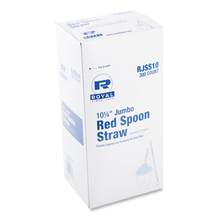 Jumbo Spoon Straw, 10.25", Plastic, Red, 300/pack, 18 Packs/carton