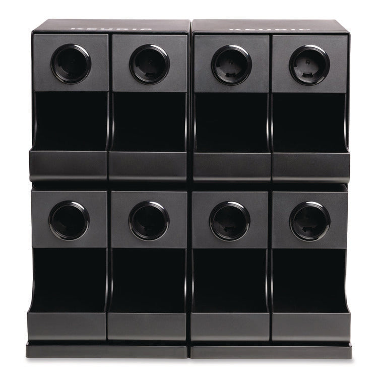 This K-Cup modular merchandiser makes it easy to keep all your favorite flavors easily accessible. Enhance your space with this sleek organizer that complements any commercial coffee maker. 8 CompartmentsStores up to 8 sleeves of up to 24-count K-Cup Pods. Width: 17.8"; Depth: 14.57"; Height: 17.28"; Compartments: 8.